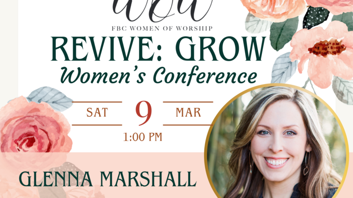 First Baptist Church of Poplar Bluff presents: REVIVE: GROW Women’s Conference. Join us for a day of worship, break-out sessions, dinner, and guest speaker Glenna Marshall.